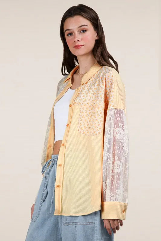 VERY J Plus Size Contrast Ribbed Knit Lace Shacket