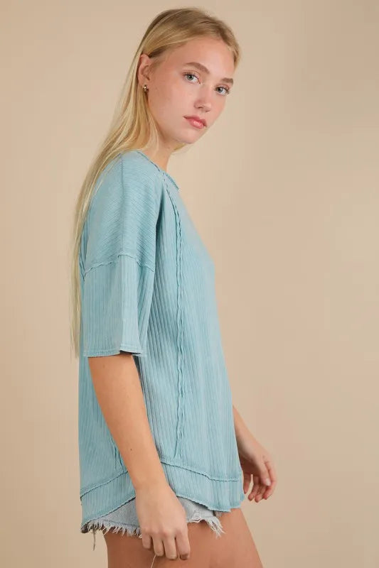 VERY J Plus Size Mineral Washed Ribbed Knit Casual Top