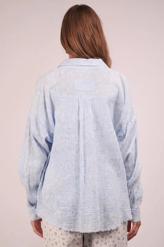 VERY J Plus Size Mineral Washed Gauze Shirt