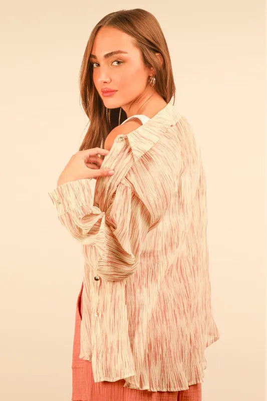 VERY J Plus Size Oversized Striped Button Down Shirt Top