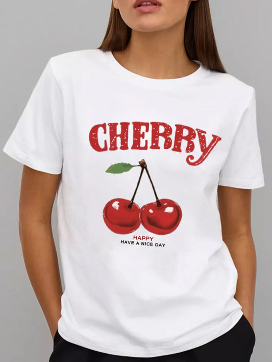 Plus Size Cherry Graphic Round Neck Short Sleeve T-Shirt