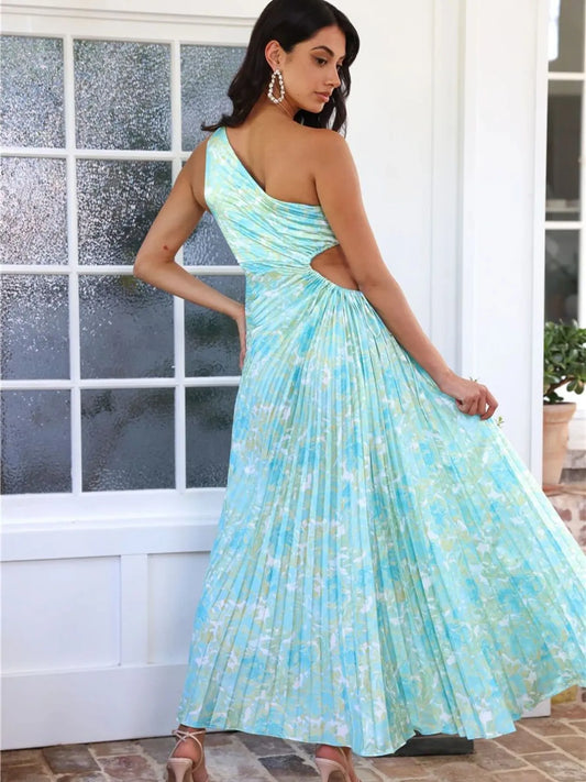 Full Size Single Shoulder Pleated Midi Dress Plus Size